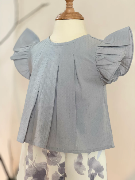 - Top: 100% cotton embroidered in ash grey