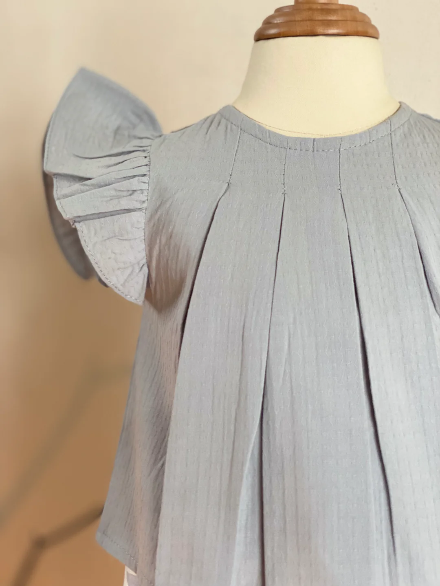 - Box pleated detailing from the neckline down to hemline