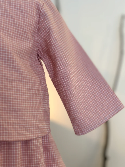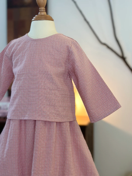 The top of this mini kurung set features a round neckline and a back button opening, while the bottom has a flattering A-line skirt with a fully elasticized waist. Complete with long sleeves, this set offers both style and comfort for your baby.