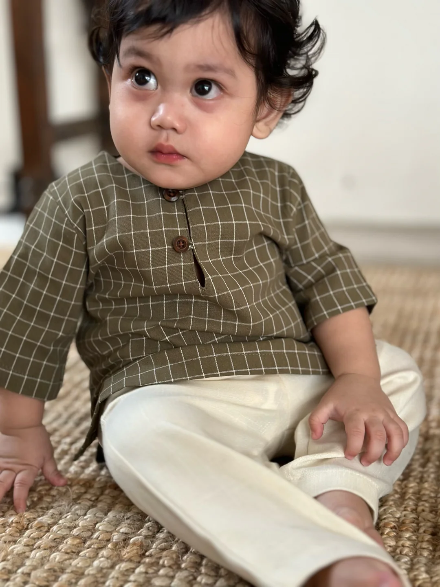 TENANG Unisex Baby’s Kurta in Olive